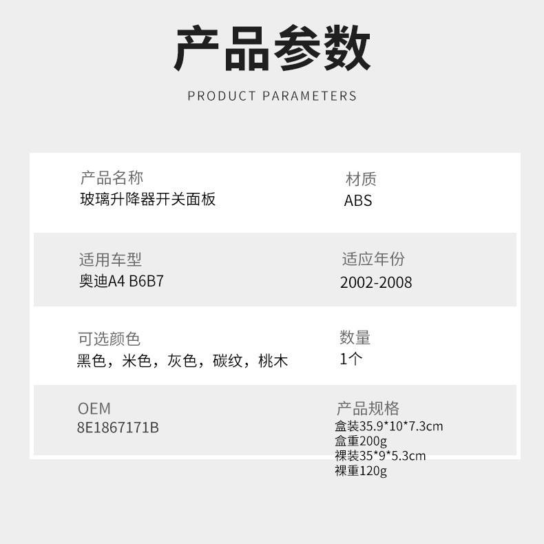 แผงสวิตช์กระจกหน้าต่าง CZPINCHEN สำหรับ Audi A4 B6B7 รุ่น 8E1867171B วัสดุ ABS สีดำ เบจ เทา ชาร์โคล พีชวูด ปี 2002-2008