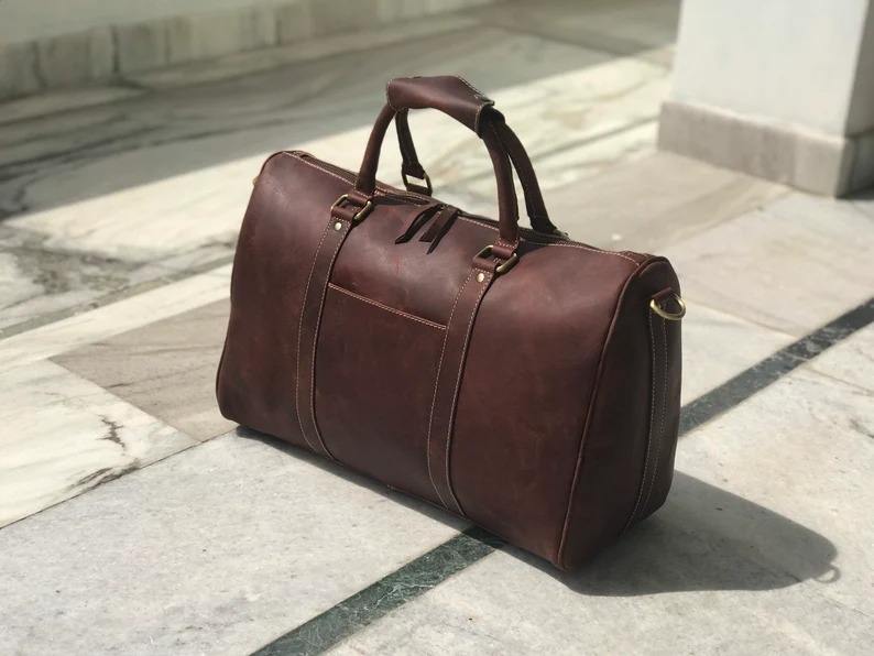 กระเป๋าเดินทางหนังแท้ขนาดพกพา สไตล์วินเทจ สำหรับเดินทางช่วงสุดสัปดาห์ เหมาะสำหรับผู้ชายและผู้หญิง ความจุขนาดใหญ่ ใช้เป็นกระเป๋าถือขึ้นเครื่องได้ พกพาสะดวก