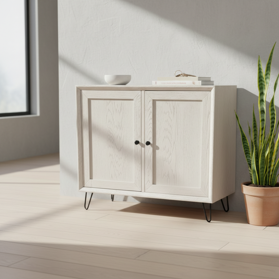 ตู้ห้องนั่งเล่นโมเดิร์นสีขาว รุ่น White Swan ดีไซน์บานยก 2 บาน ทนทานและเป็นมิตรกับสิ่งแวดล้อม