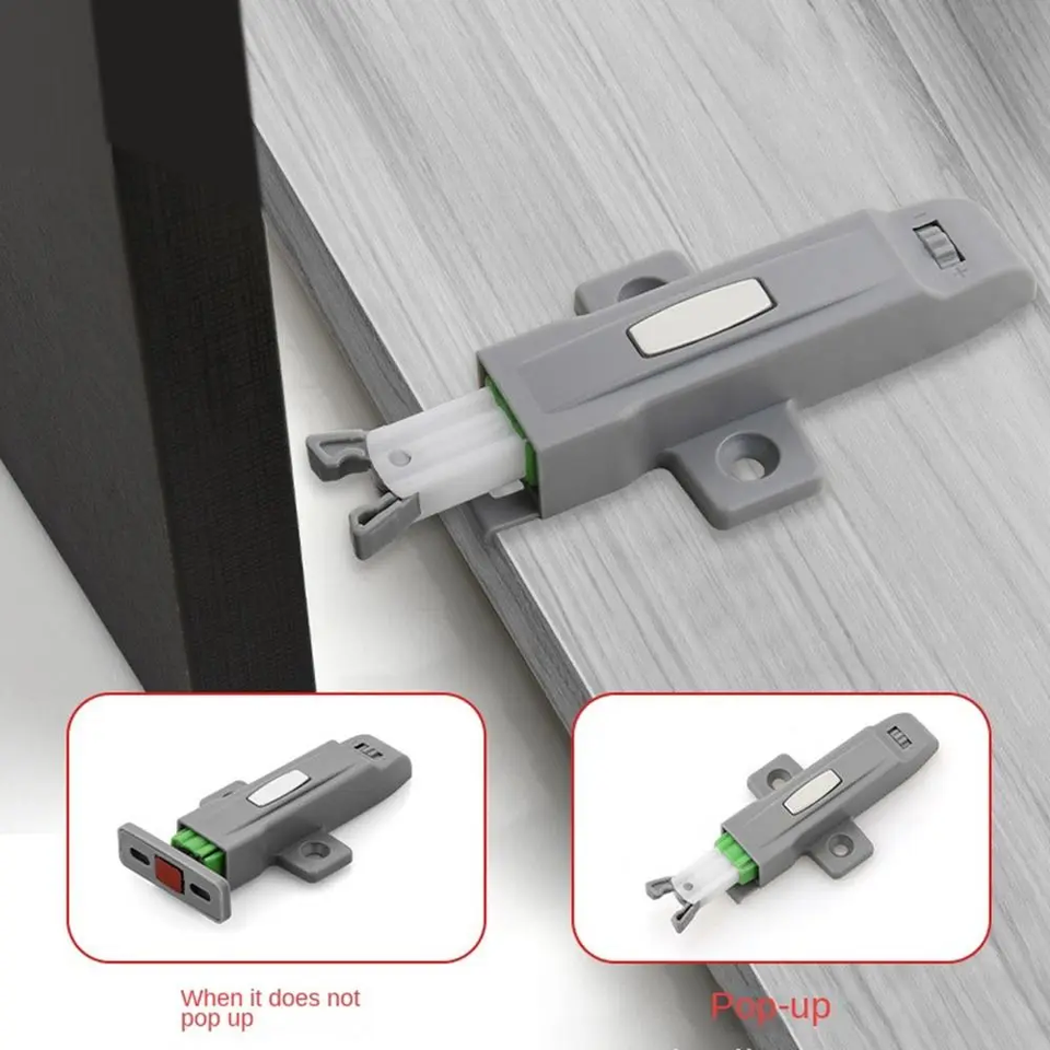 ตัวล็อคประตูตู้ครัวสแตนเลสแบบโมเดิร์น พร้อมตัวกันกระแทกแบบซ่อน ปิดประตูอัตโนมัติ อุปกรณ์กันกระแทกสำหรับตู้เสื้อผ้าและเฟอร์นิเจอร์
