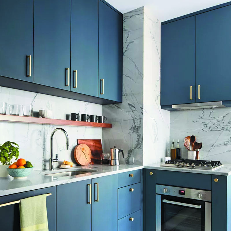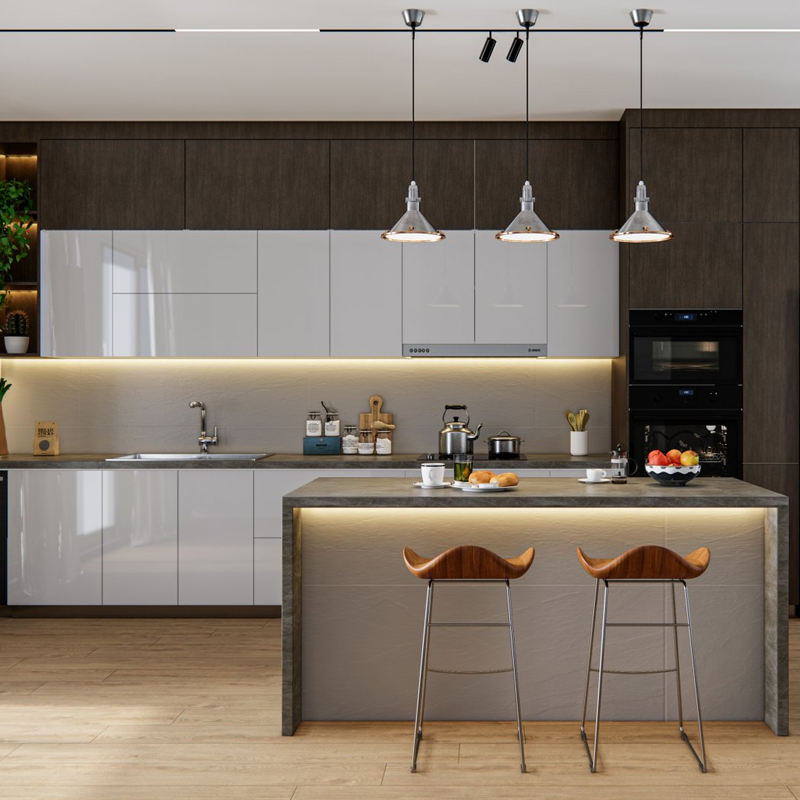 ตู้ครัวติดผนังไม้สไตล์โมเดิร์น พร้อมหน้าบานสีตามสั่งและขนาดมาตรฐาน