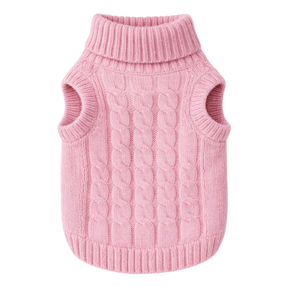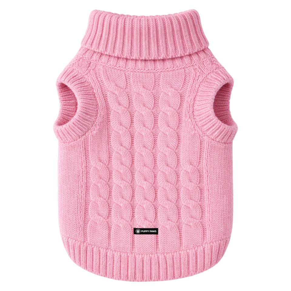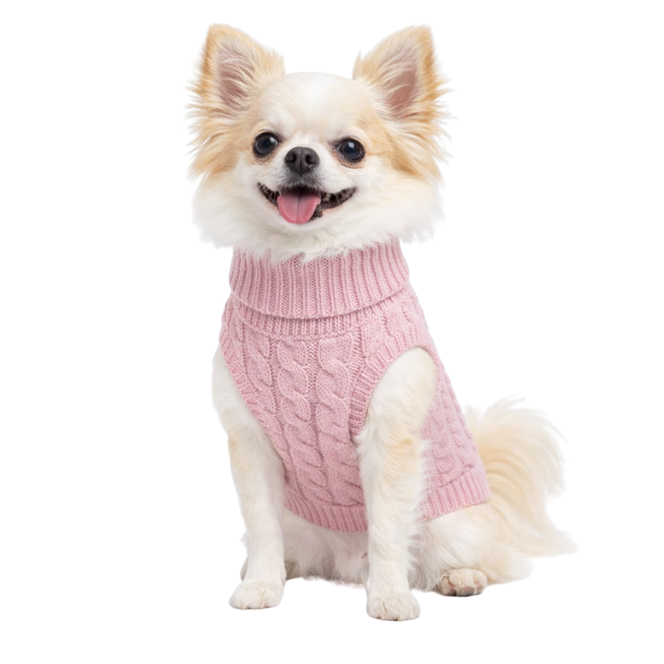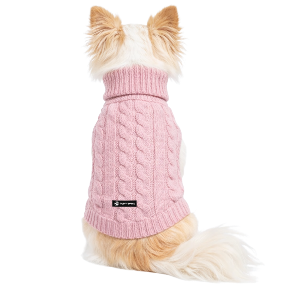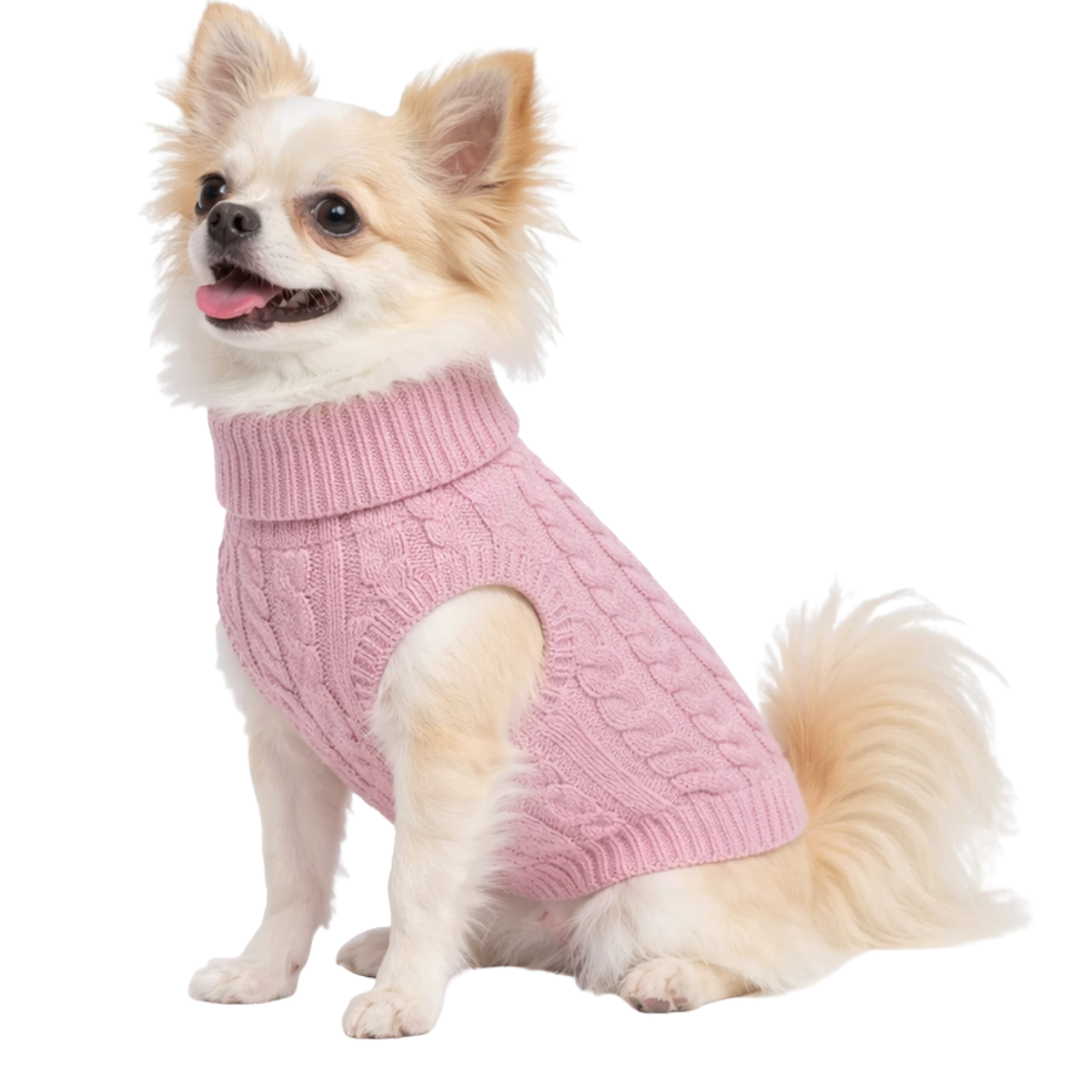 เสื้อสเวตเตอร์ถักลายเคเบิ้ลสำหรับสุนัข สีชมพู อุ่นสบายสำหรับฤดูหนาว เสื้อคลุมสัตว์เลี้ยงเนื้อนุ่ม เสื้อถักนิตติ้งสำหรับสุนัข เสื้อผ้าสำหรับสุนัขที่ให้ความอบอุ่นในสภาพอากาศหนาวเย็น