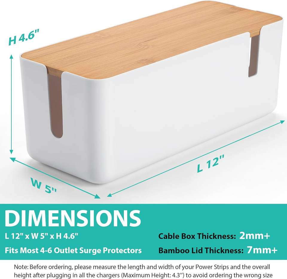 กล่องจัดการสายเคเบิลพร้อมกล่องเก็บสายเคเบิลสีขาวฝาไม้ไผ่กล่องจัดระเบียบสายไฟขนาดเล็กเพื่อปกปิดอุปกรณ์ป้องกันไฟกระชากสำหรับโต๊ะและสายทีวี