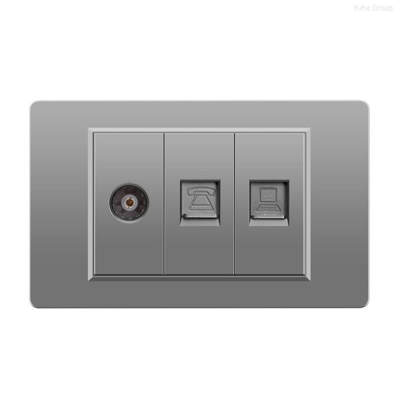 แผงปลั๊กติดผนังสำหรับอุตสาหกรรมเคเบิลทีวี พร้อมแผงสัมผัส ทนทาน รองรับปลั๊กดาวเทียม 10A และสวิตช์ติดผนัง