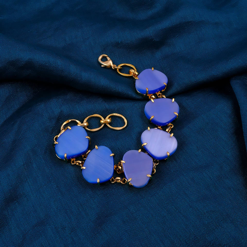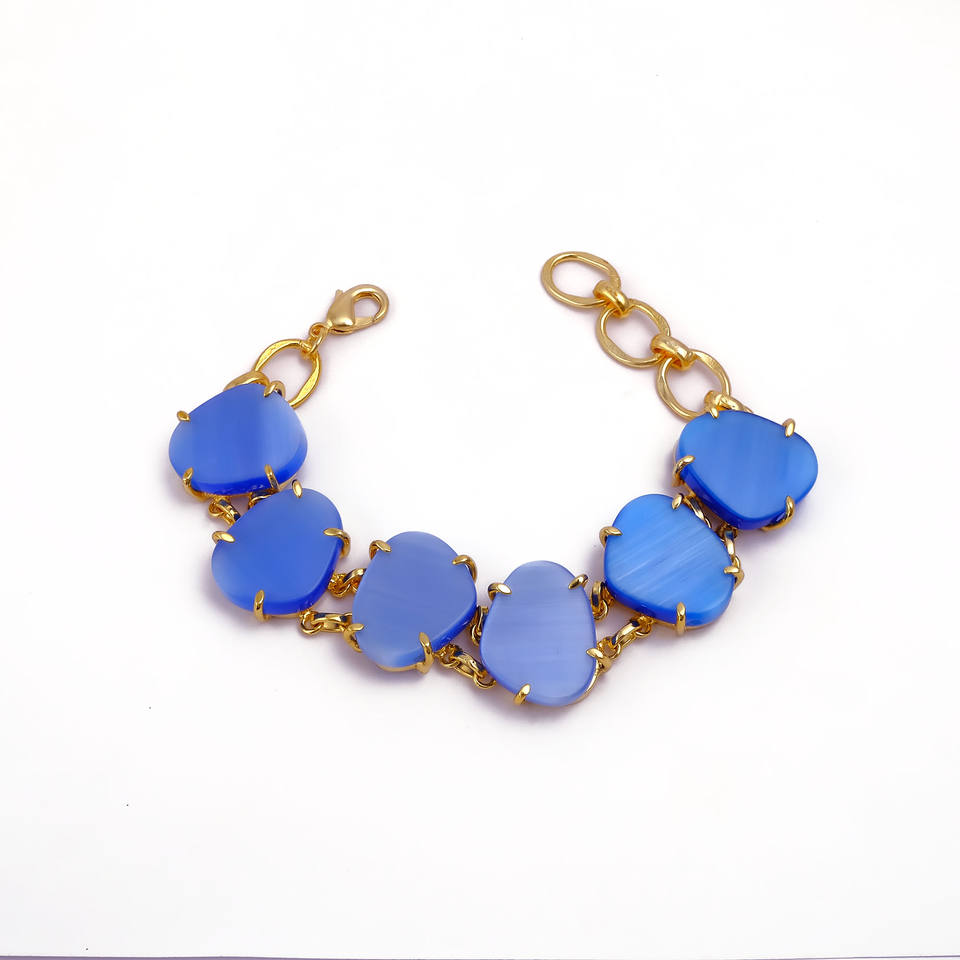 สร้อยข้อมือแบบโซ่ประดับพลอยตาแมวสีน้ำเงินทรงคาโบชอง ชุบทอง 18K ปรับขนาดได้ พร้อมจี้รูปกรงเล็บ สร้อยข้อเท้าสำหรับผู้หญิง ของขวัญ เครื่องประดับ El Joyero
