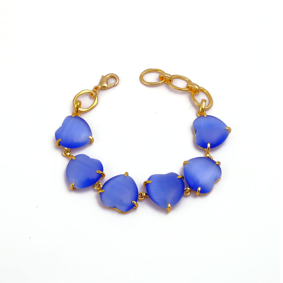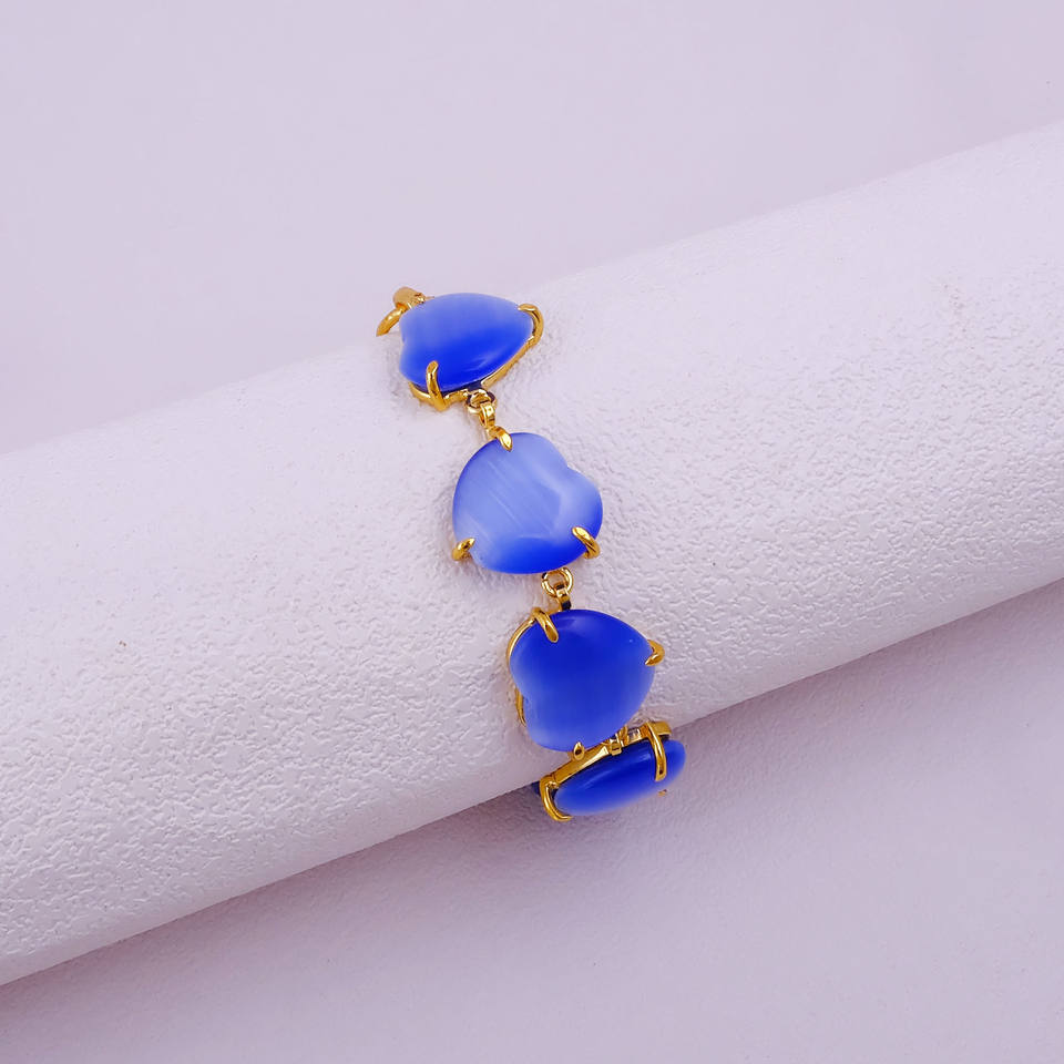 กำไลข้อมือรูปหัวใจประดับพลอยตาแมวสีน้ำเงินแบบคาโบชอง - กำไลข้อมือรูปหัวใจชุบทองทันสมัยสำหรับคนรัก