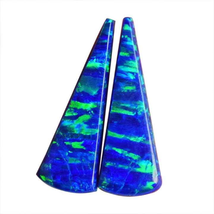 Cabochon ต่างหูขนาด22X6X2.5มม.,เครื่องประดับทำพลอยคู่ไฟโอปอลทำด้วยมือคู่โอปอลประกายสีฟ้าเขียวเพลิง