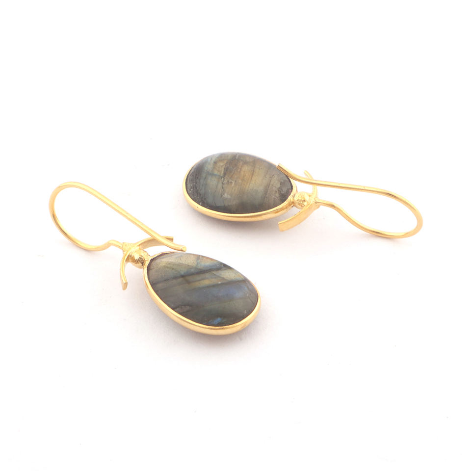 ต่างหูห้อยรูปไข่ลาบราดอไรต์ธรรมชาติ ชุบทองเหลือง ประดับอัญมณีธรรมชาติ ของขวัญสำหรับผู้หญิง สไตล์โบโฮ ทำมือ