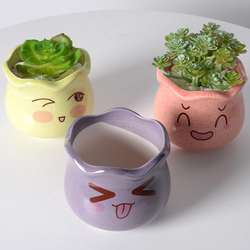 กระถางปลูกต้นกระบองเพชรเซรามิกน่ารักขนาดเล็กสำหรับตั้งโต๊ะในบ้านของตกแต่งสำนักงานและสวนในเทพนิยาย