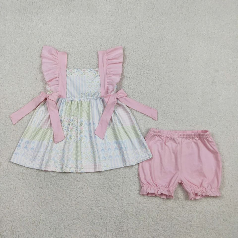 ชุดพิมพ์ลายฤดูใบไม้ผลิฤดูร้อนแบบลำลองสำหรับเด็กผู้หญิงสีชมพูกระบองเพชร