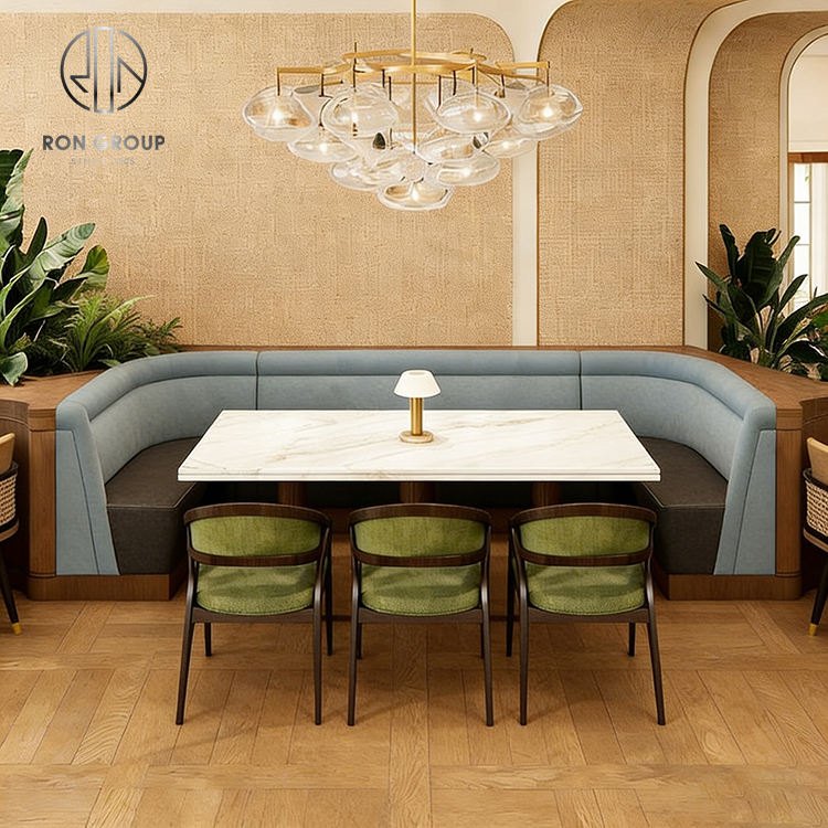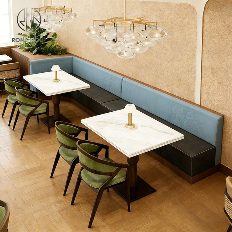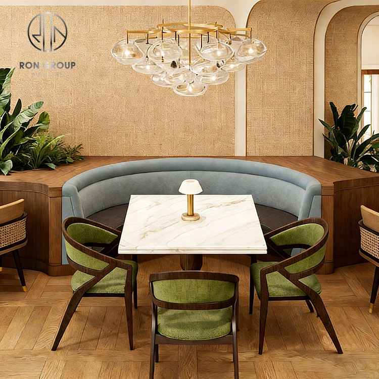 ชุดโต๊ะเก้าอี้ร้านกาแฟทรงครึ่งวงกลมหินอ่อน พร้อมโซฟาสำหรับร้านกาแฟและร้านอาหาร