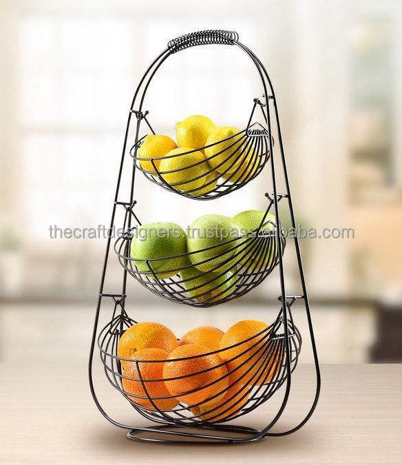 ตะกร้าผลไม้ลวดโลหะแบบพกพาสไตล์กรงสำหรับตกแต่งโต๊ะตะกร้าแขวนที่มีน้ำหนักเบาทันสมัยตะกร้าโลหะ