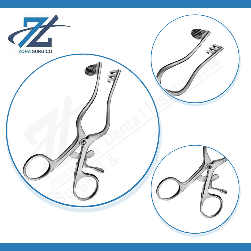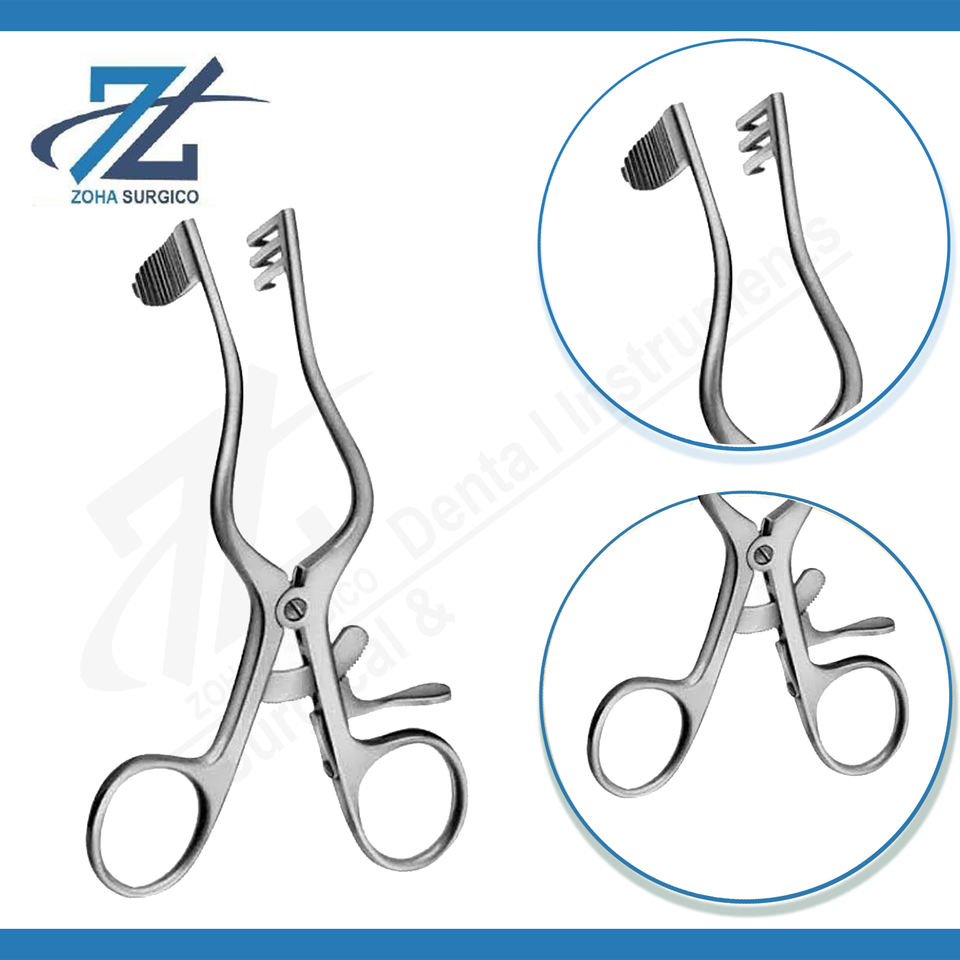 เครื่องถ่างหนังศีรษะแบบโค้ง ยี่ห้อ Cairns แบบยึดติดเอง ใบมีดหมุนได้ ยาว 140 มม. ผู้ผลิตเครื่องมือผ่าตัดในประเทศปากีสถาน