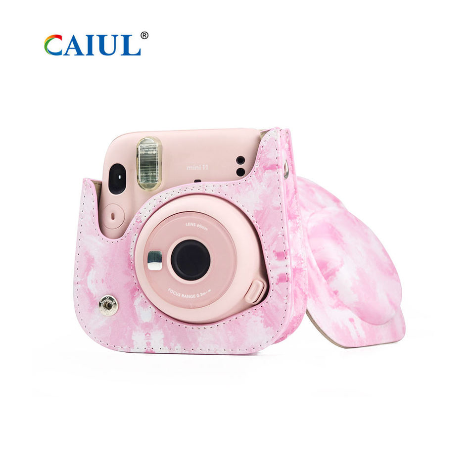 CAIUL กระเป๋าหนัง PU สะพายไหล่, เคสป้องกันกล้องสำเร็จรูปพร้อมพื้นผิวสีชมพูอุปกรณ์เสริมกล้องขนาด11/12/9/7