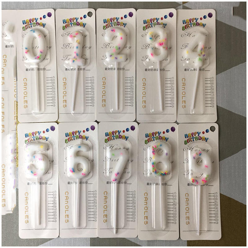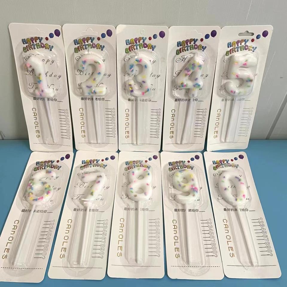 เทียนตัวเลขตกแต่งเค้ก เทียนหลากสีสำหรับงานวันเกิด ขายดี 0-9 บรรจุในบлистерการ์ด