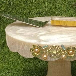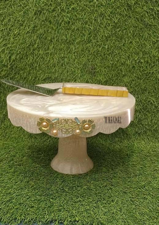 ถาดรองเค้กถาดเสิร์ฟเค้กพร้อมมีดทำจากเรซินหลากสีสำหรับตกแต่งเค้กขนมหวาน