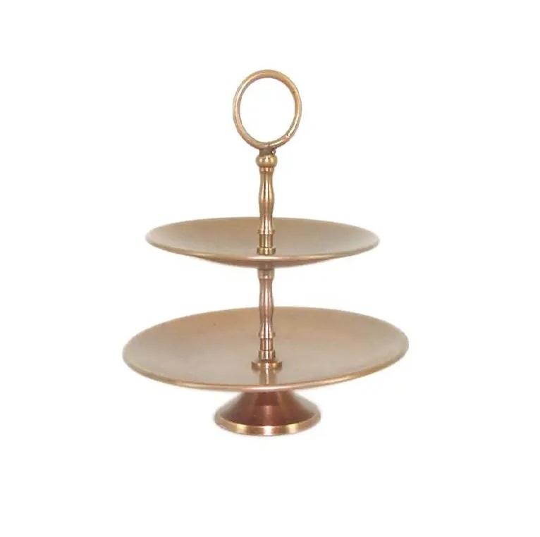 แท่นวางเค้กบนโต๊ะอาหารอุปกรณ์เสริมสำหรับเสิร์ฟเค้กผลไม้แท่นวางเค้กโลหะเคลือบสีทอง2ชั้น