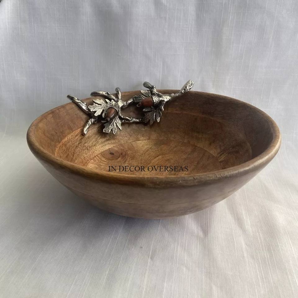 ชามไม้ทำจากอินเดียด้ามโลหะขัดเงาสีเงินของนักออกแบบดอกไม้ของ Cala Lily สำหรับทรงกลม