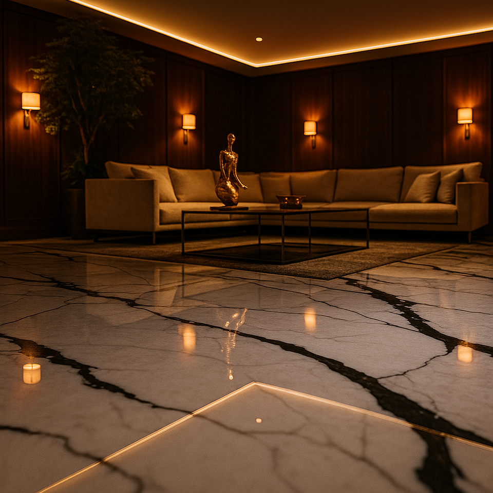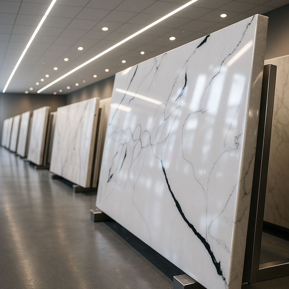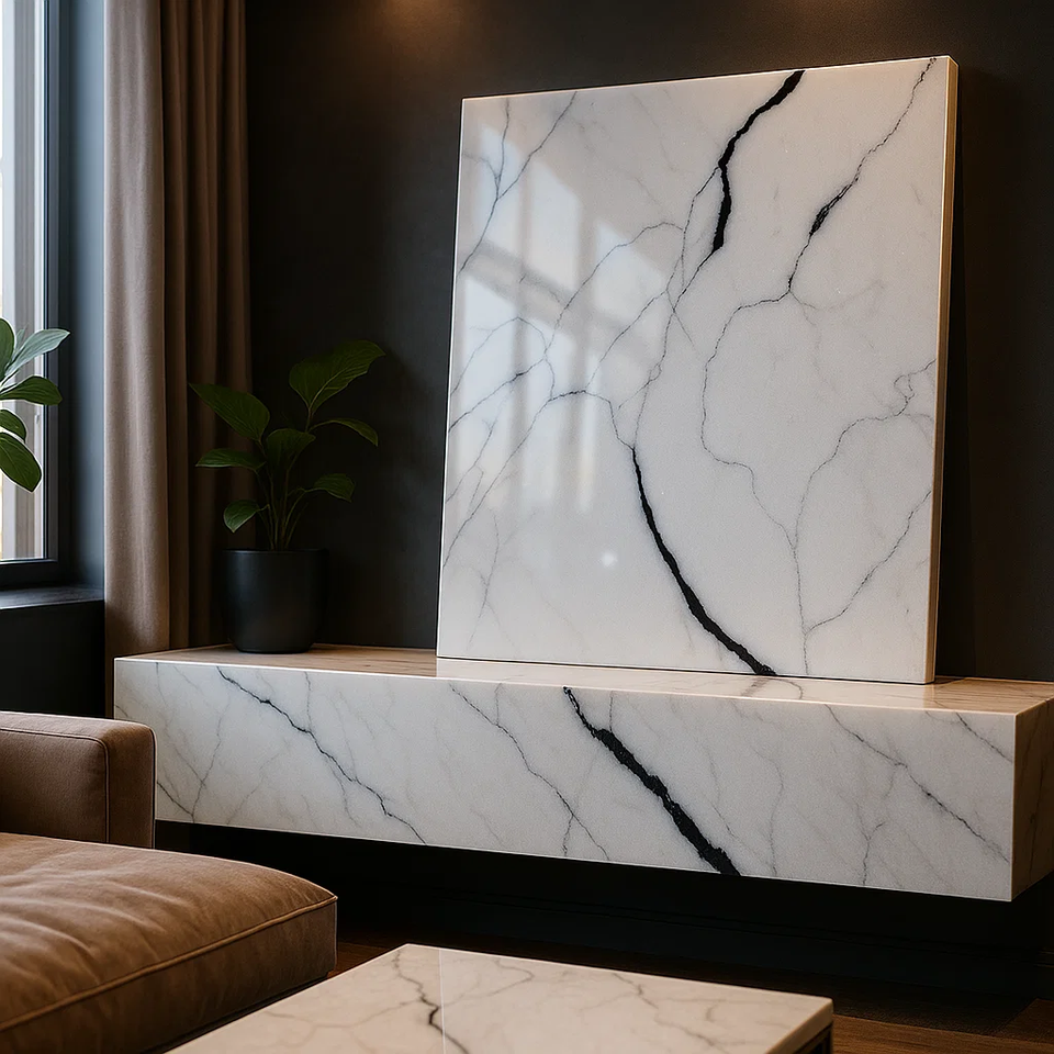 ท็อปโต๊ะเครื่องแป้งและพื้น Calacatta Black Elite รุ่นโมเดิร์น - ทนทาน กันน้ำ ทนความร้อน ทนไฟ - ความหนา 20 มม./30 มม.