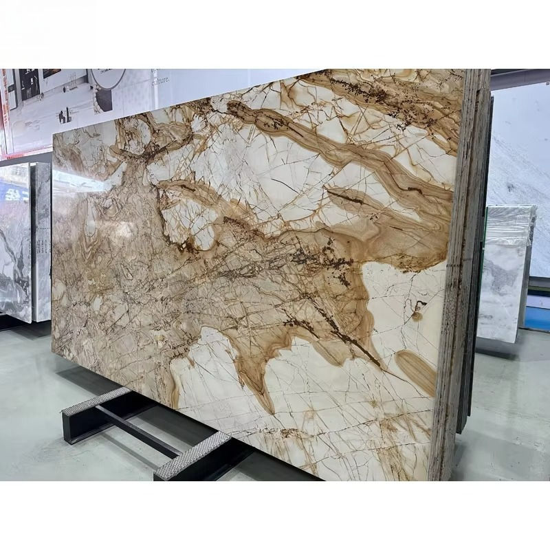 แผ่นหินอ่อน Calacatta Gold สำหรับงานตกแต่งผนังและพื้นในครัว โต๊ะกาแฟ โรงแรม และวิลล่า ผลิตภัณฑ์กระเบื้อง
