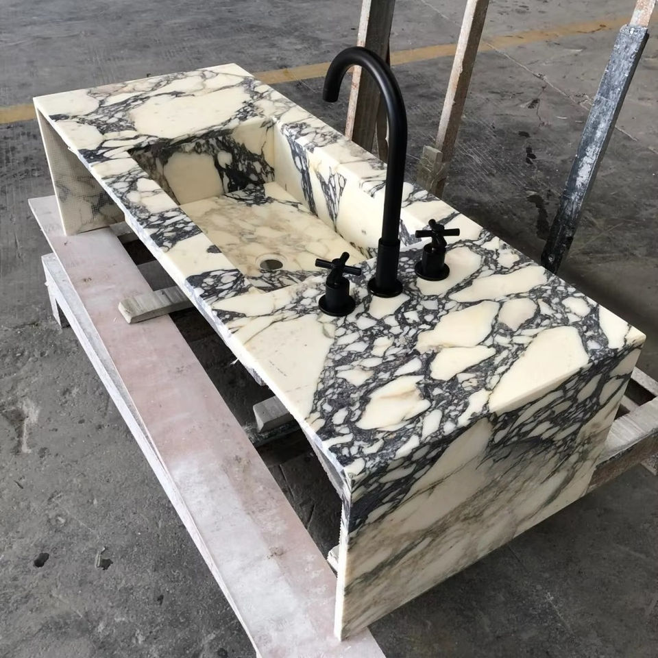 ชื่อสินค้า:อ่างล้างหน้าหิ้งหินอ่อน Calacatta Viola ติดผนัง ผิวเงา สีม่วง