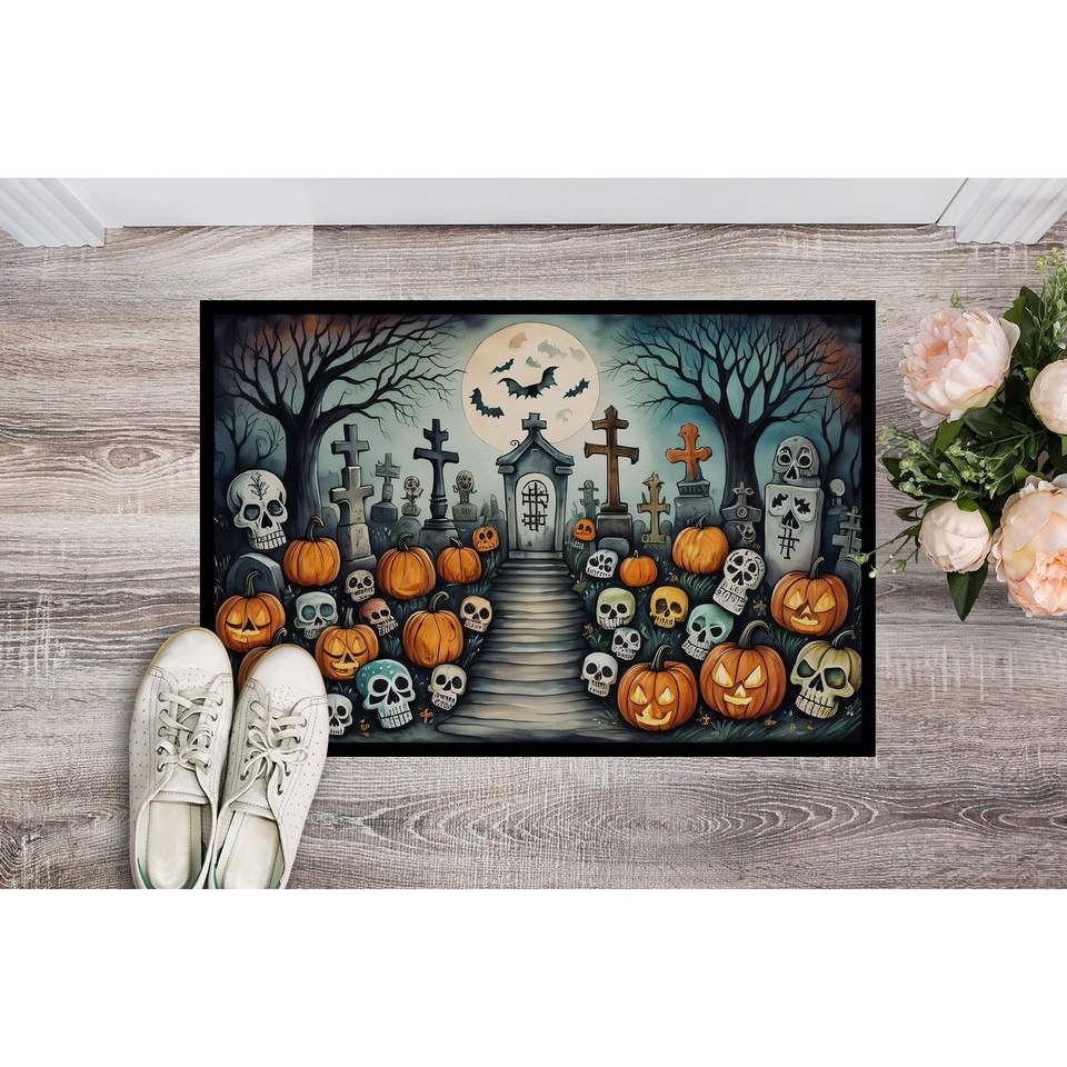 Calaveras พรมเช็ดเท้าลายฮาโลวีนน่ากลัว, พรมเช็ดเท้ากันลื่นในร่มกลางแจ้ง24ชม. X 36W พรมขนสั้นแบบซักได้สำหรับประตูหน้าประตูทางเข้า