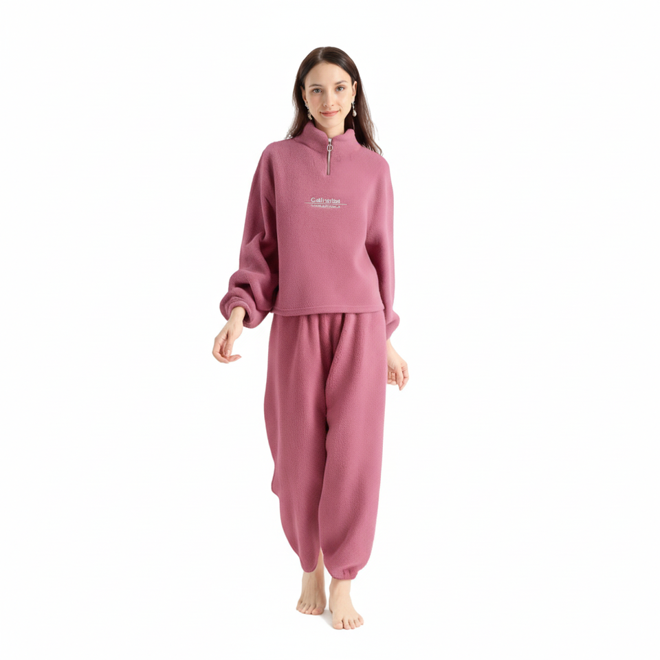 คาลิไคน่าชุดนอนผ้าฟลีซสำหรับผู้หญิง แขนยาว ซิปด้านหน้า สีพื้น ชุดนอนฤดูหนาวเนื้อนุ่ม สวมใส่สบาย ทรงหลวม ความยาวเต็มตัว