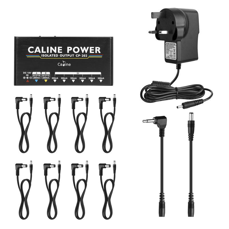 Caline CP-202แหล่งจ่ายไฟ36W 8เอาท์พุทสำหรับ9V/12V/15V/18V เอฟเฟกต์กีตาร์พร้อมอะแดปเตอร์และสายเคเบิล10เส้น