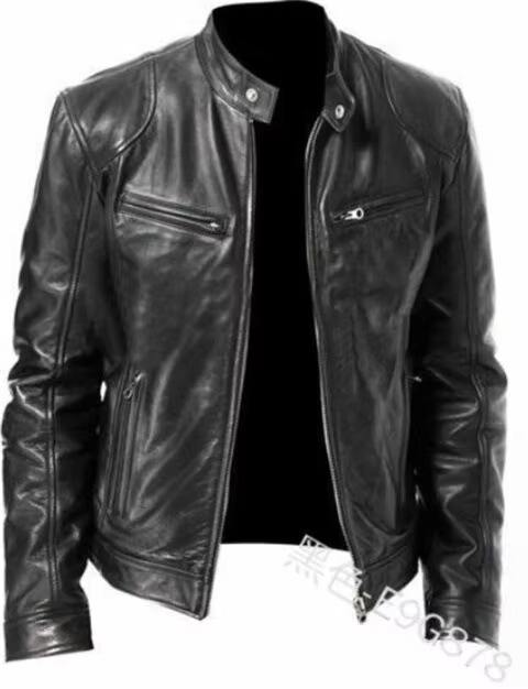 แจ็คเก็ตหนังสีน้ำตาลอูฐทรงสลิมฟิตสำหรับผู้ชาย สไตล์นักขี่มอเตอร์ไซค์ พร้อมกระเป๋าซิป และแจ็คเก็ตคลาสสิกสำหรับผู้ชาย