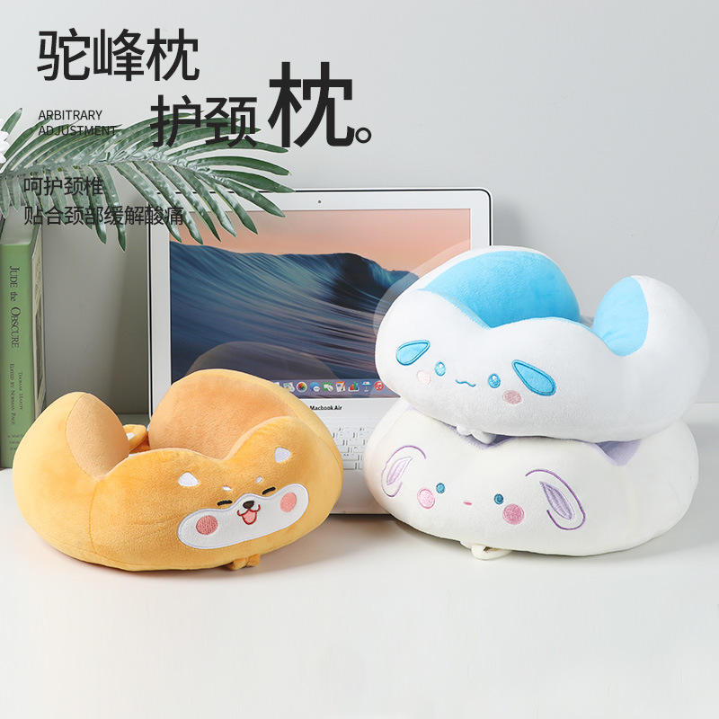 หมอนรองคอรูปตัวยู ลายการ์ตูนฉลาม พกพาสะดวก ไส้ใยโพลีเอสเตอร์ ขนาด 28x26x14 ซม.