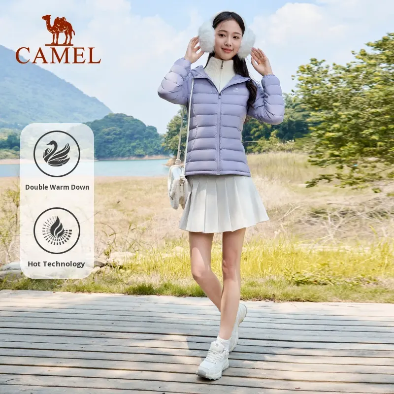 เสื้อแจ็คเก็ตดาวน์น้ำหนักเบาสำหรับผู้ชายและผู้หญิง ยี่ห้อ Camel กันน้ำ เหมาะสำหรับฤดูใบไม้ร่วงและฤดูหนาว ทรงสั้น กระชับ อุ่นสบาย ใช้งานได้หลากหลาย มีฮู้ด สไตล์ลำลองและสปอร์ต