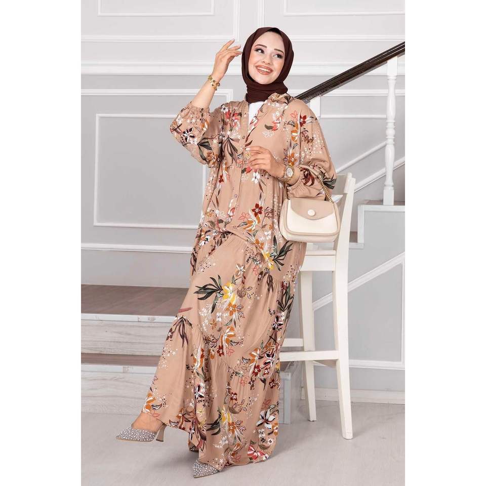 เดรสฮิญาบคาเมลผ้าวิสโคสพร้อมชุดเดรสสุภาพ