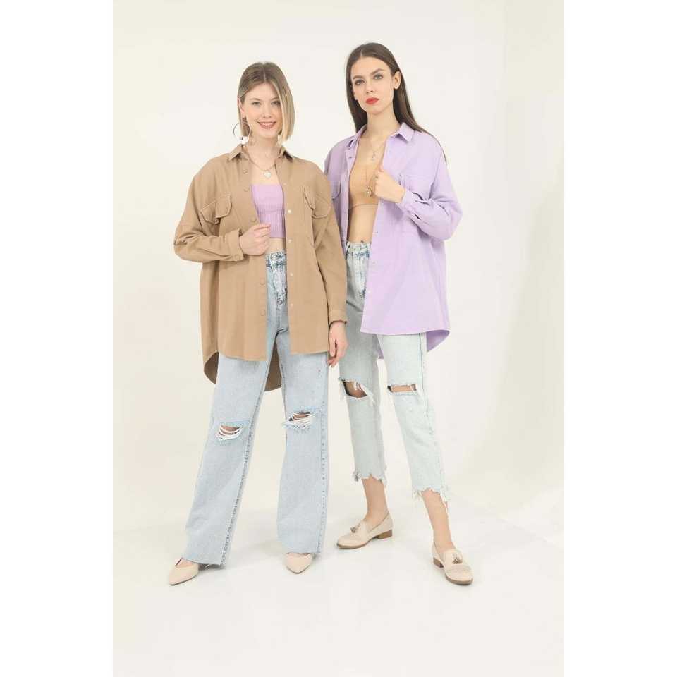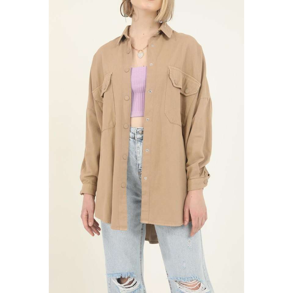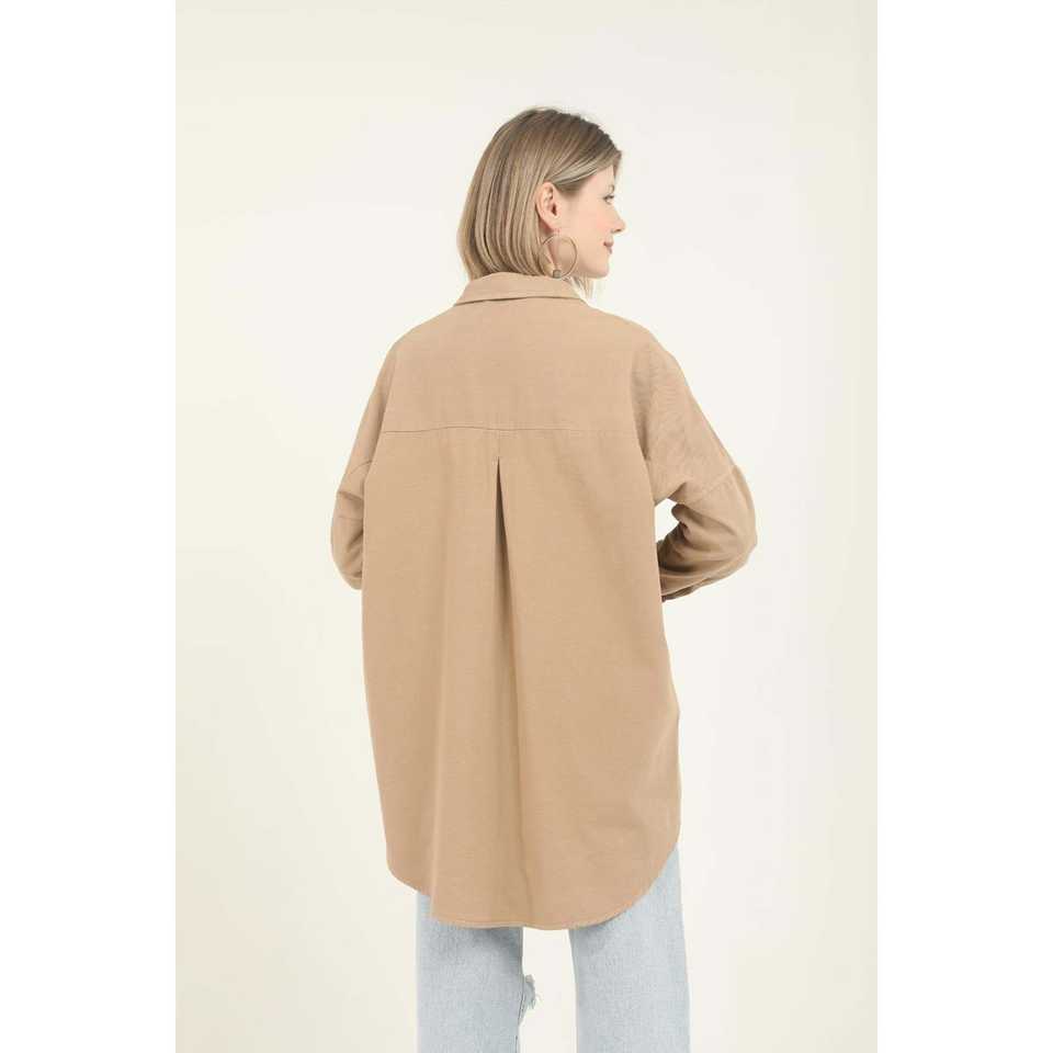 เสื้อเชิ้ตโอเวอร์ไซส์ผู้หญิง Camel แบบติดกระดุม ผ้าป๊อปลิน สไตล์ลำลองสำหรับทุกวัน