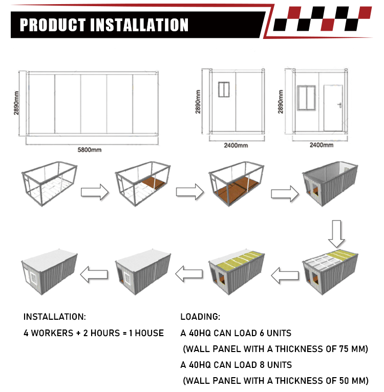ชื่อสินค้า:บ้านตู้คอนเทนเนอร์แบบถอดประกอบได้