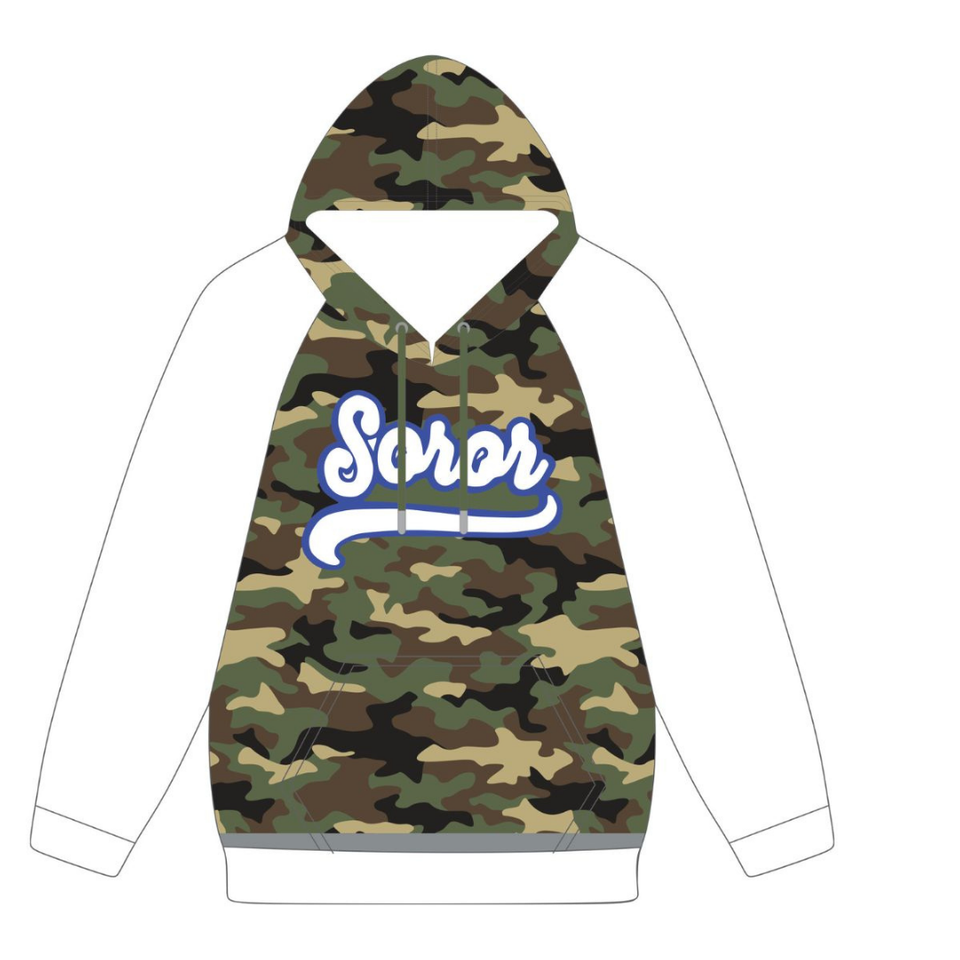 เสื้อฮู้ดแขนแร็กแลนลายพราง 20 เซต้า ฟี เบต้า โซโรรี แรงบันดาลใจจากผู้ก่อตั้งในปี 1920 สมาคมนักศึกษาหญิงกรีก คุณภาพพรีเมียม