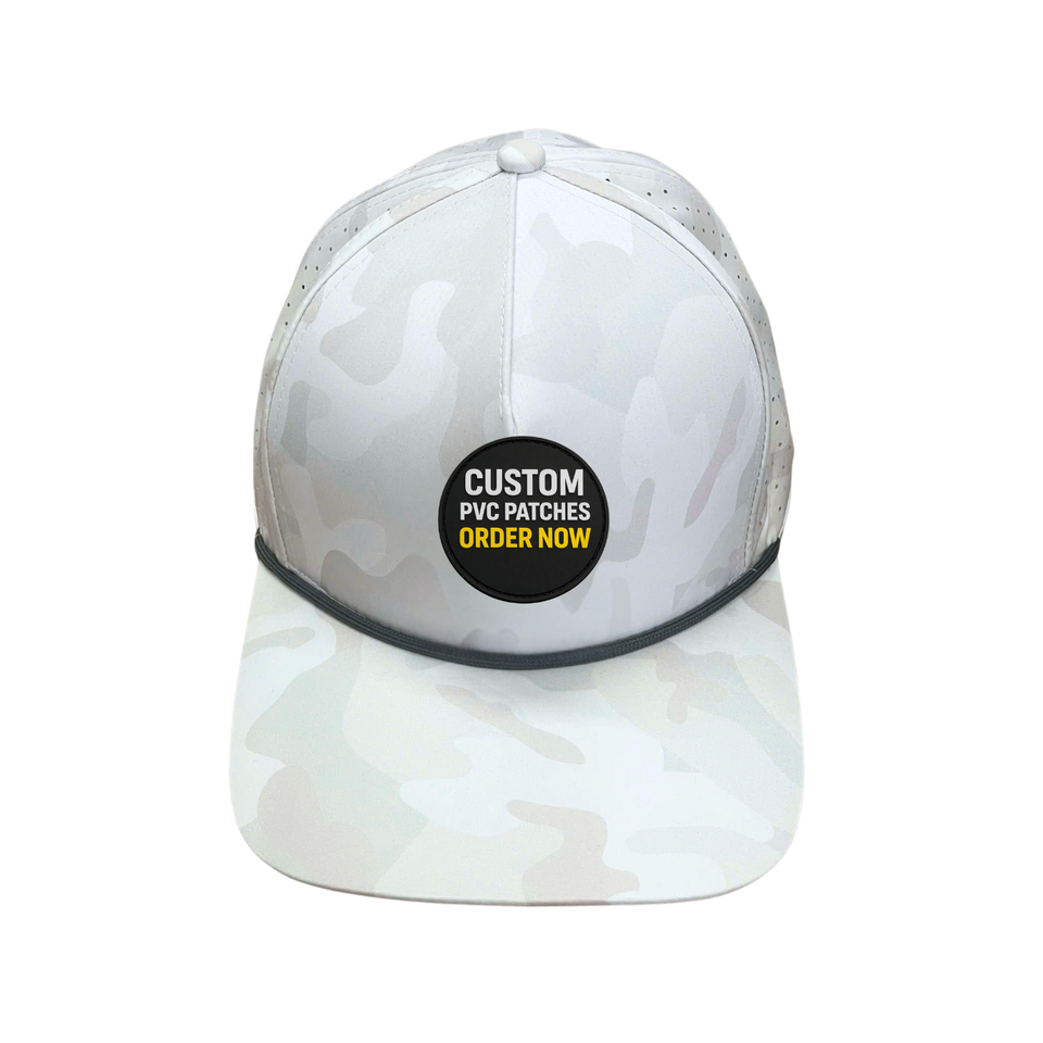 หมวกเบสบอลแบบ 5 ชิ้นส่วนลายพราง ปักโลโก้ PVC แบบยาง ตัดด้วยเลเซอร์ กันน้ำ ปีกโค้ง หมวกกอล์ฟลายพราง