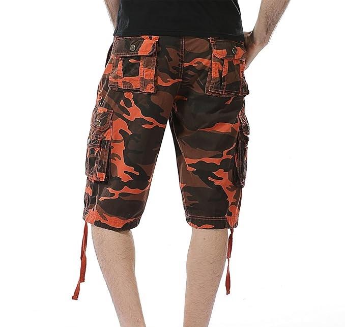 กางเกงขาสั้นคาร์โก้ลายพรางสำหรับผู้ชายกางเกงกีฬาขาสั้นทรงคาร์โก้มีกระเป๋า4กระเป๋าสำหรับปีนเขากิจกรรมกลางแจ้งแนวยุทธวิธีสำหรับใส่วิ่งออกกำลังกายในฤดูร้อนระบายอากาศได้ดี