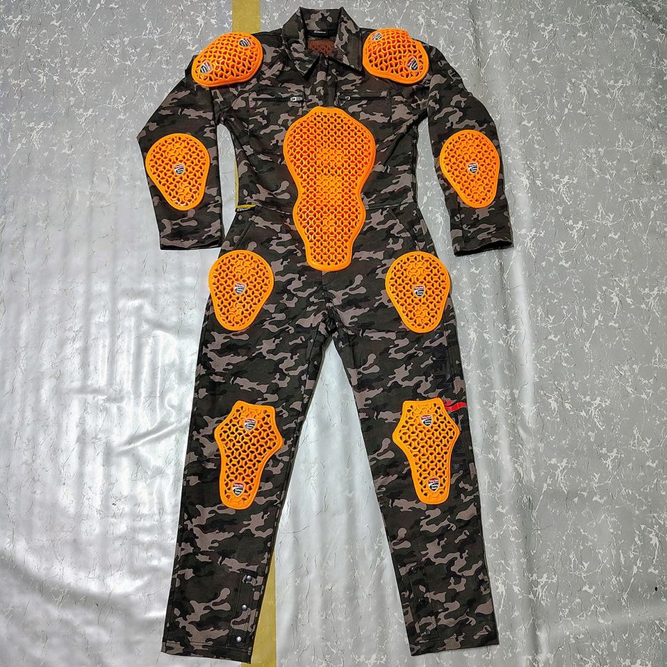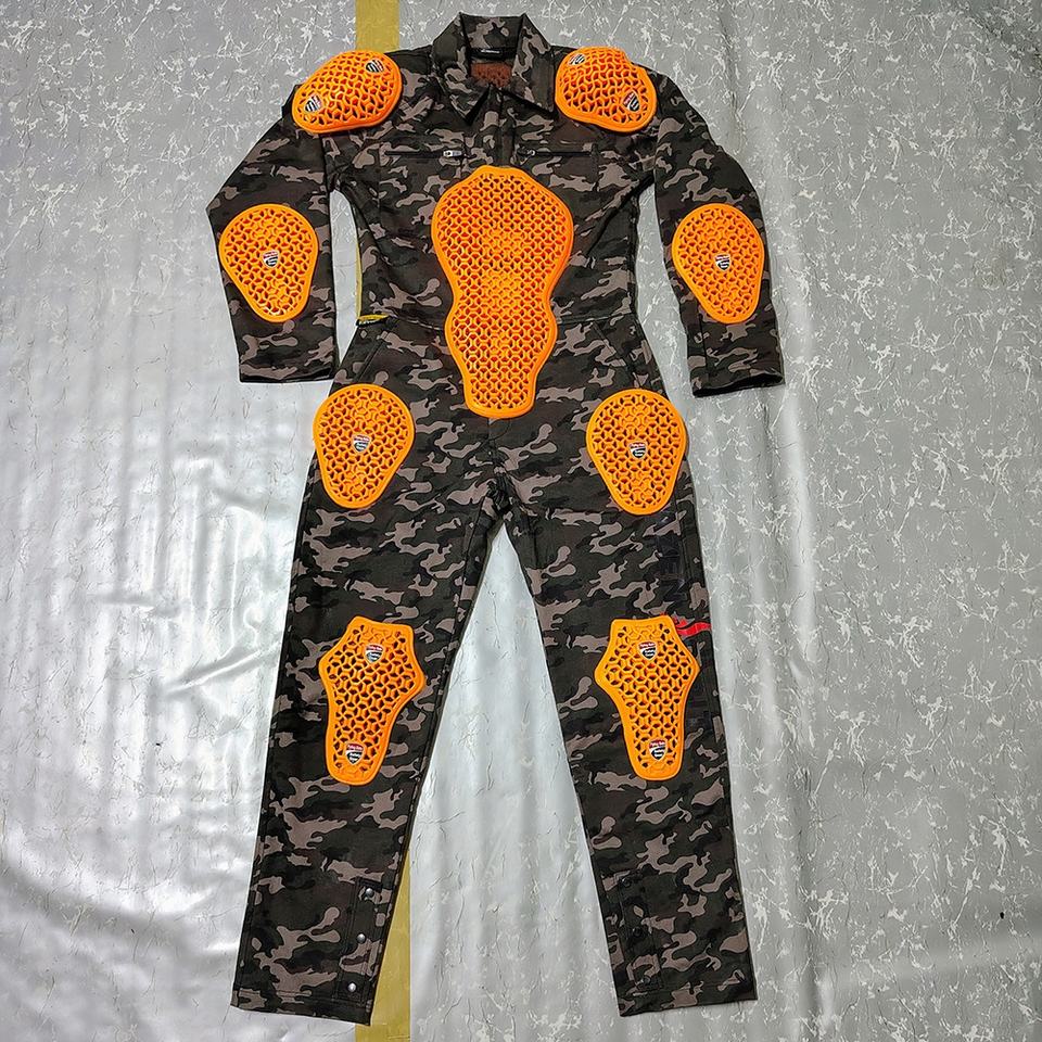 ชุดสูทหนึ่งชิ้นสำหรับมอเตอร์ไซค์เสื้อสูทแฟชั่นแบบระบายอากาศได้ดีลายพรางทำจากผ้าฝ้ายสีแดง