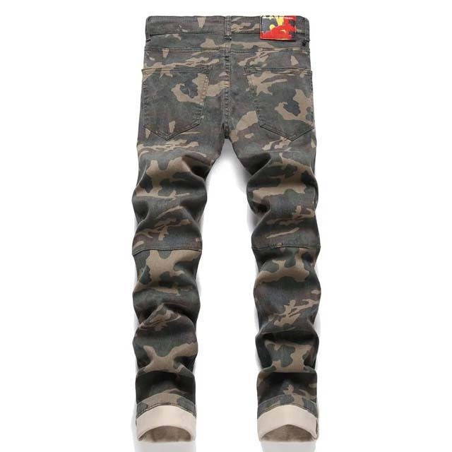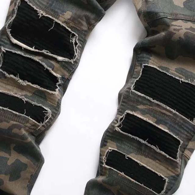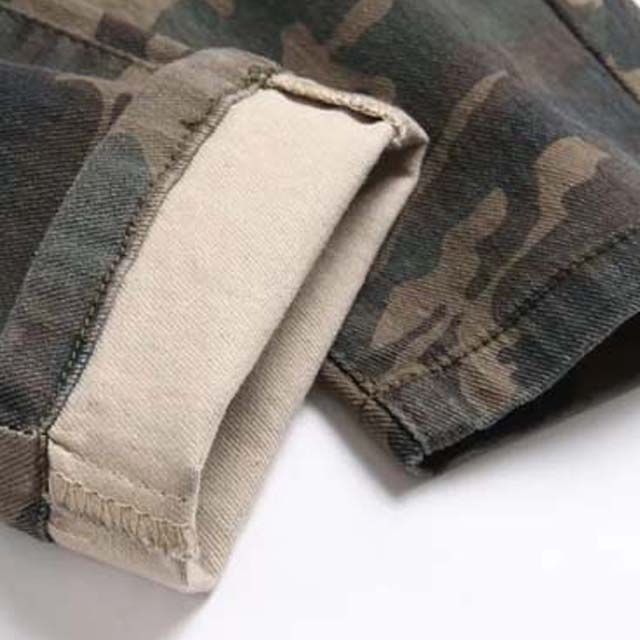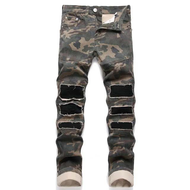 กางเกงยีนส์ลายพรางของผู้ชายกางเกงยีนส์เอวสูงแบบกำหนดเองมีกระเป๋า
