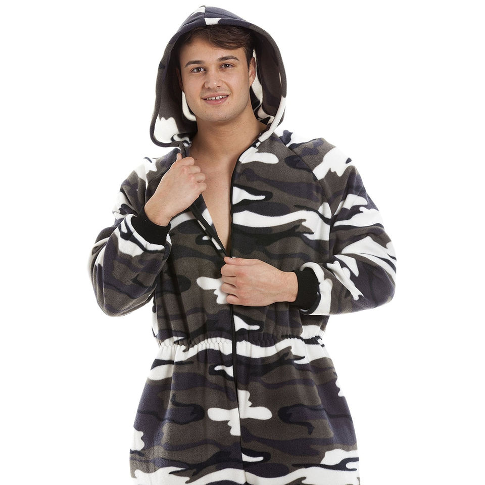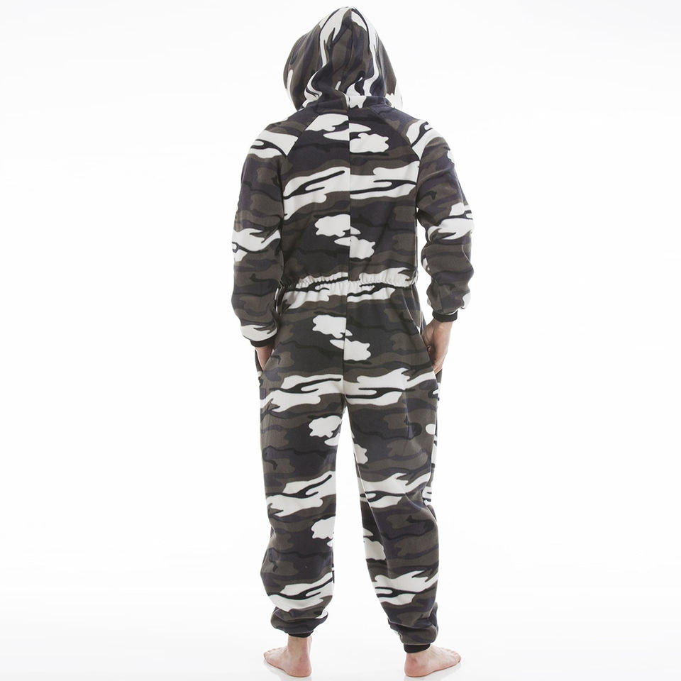ชุดจั๊มสูทขนเฟลซเชอร์ปาสำหรับผู้ชาย ลายพราง สำหรับฤดูหนาว ชุดนอนลำลอง ชุดนอนพิมพ์โลโก้ สีดำ สีตามสั่ง แบรนด์ตามสั่ง คุณภาพสูง
