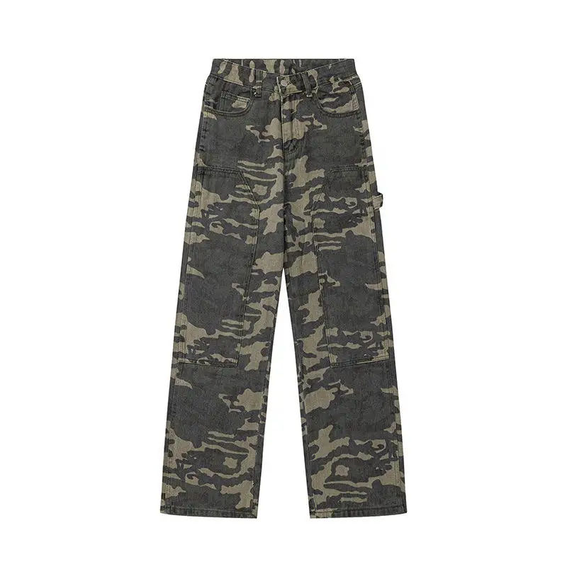 กางเกงยีนส์ลายพรางทรงหลวมสไตล์แบ็กกี้คุณภาพสูงแฟชั่นกางเกงยีนส์สไตล์ดิสเทรสแบบเรียบง่ายสั่งทำได้