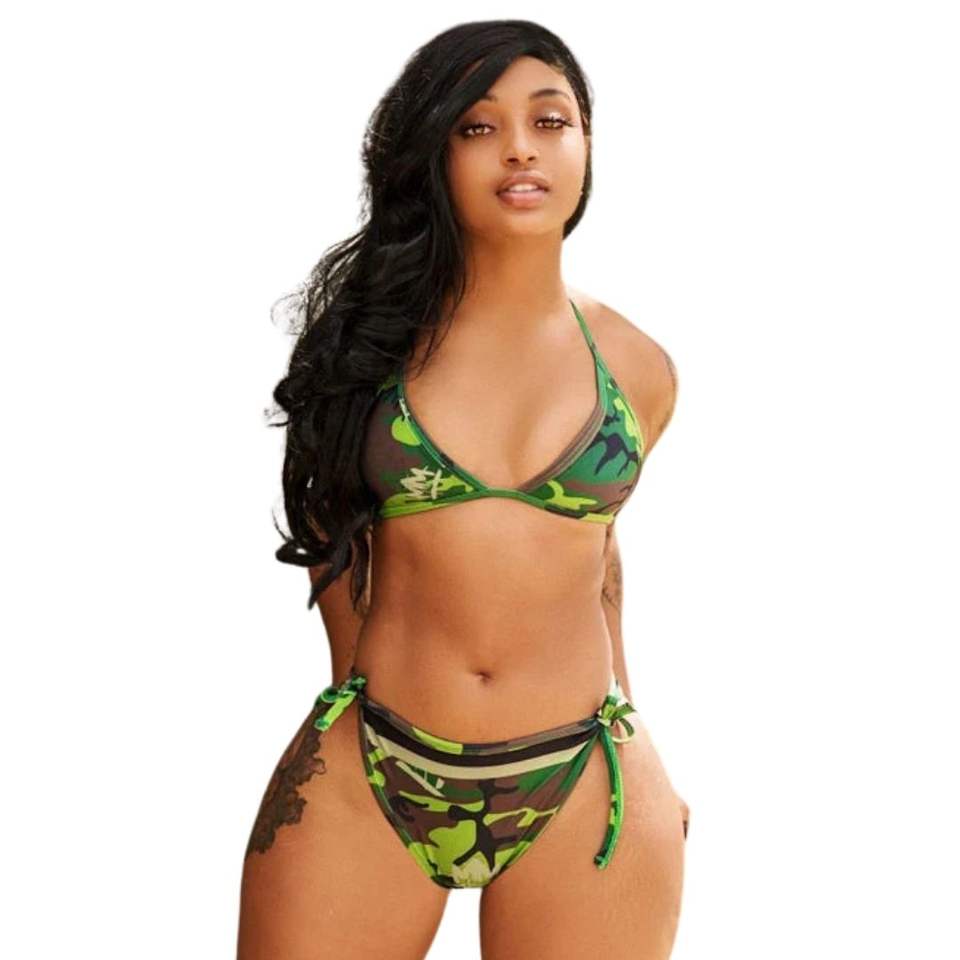 ชุดบิกินี่ลายพรางผู้หญิง ชุดว่ายน้ำสองชิ้น ดีไซน์ลายพราง ยืดหยุ่น กระชับรูปร่าง สไตล์ชายหาด ฤดูร้อน