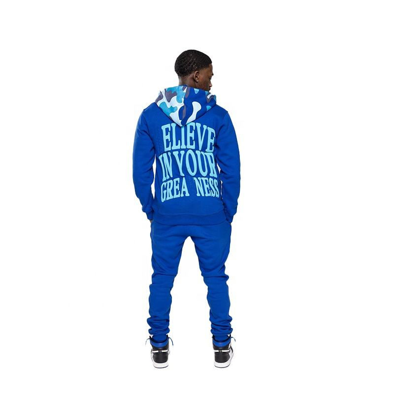 ชุดเซ็ตฮู้ดดี้ซิปเต็มตัวพิมพ์ลายพัฟพร้อมโลโก้สไตล์วินเทจสำหรับฤดูหนาว พร้อมกางเกงจ็อกเกอร์ทรงสแต็ค ชุดสเวตสูทแบบยูนิเซ็กส์