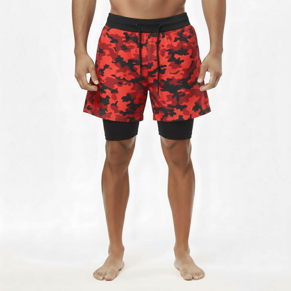 กางเกงวิ่งลายพรางผู้ชาย 2 in 1 แบบสองชั้น แห้งเร็ว กางเกงกีฬาออกกำลังกาย ฟิตเนส จ็อกกิ้ง วิ่งออกกำลังกาย กางเกงขาสั้นกีฬาผู้ชาย