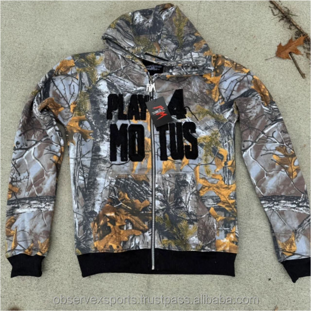 ชุดออกกำลังกายลายพรางสำหรับผู้ชายชุดวอร์มมีฮู้ดและกางเกงวิ่งแบบรูดซิป