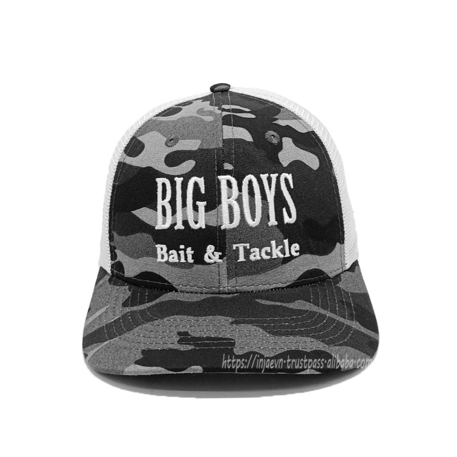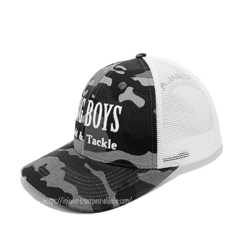หมวกทรูเกอร์ลายพรางหมวกกีฬา2D เย็บปักแบบโค้งหมวกตาข่ายด้านหลังในเวียดนาม