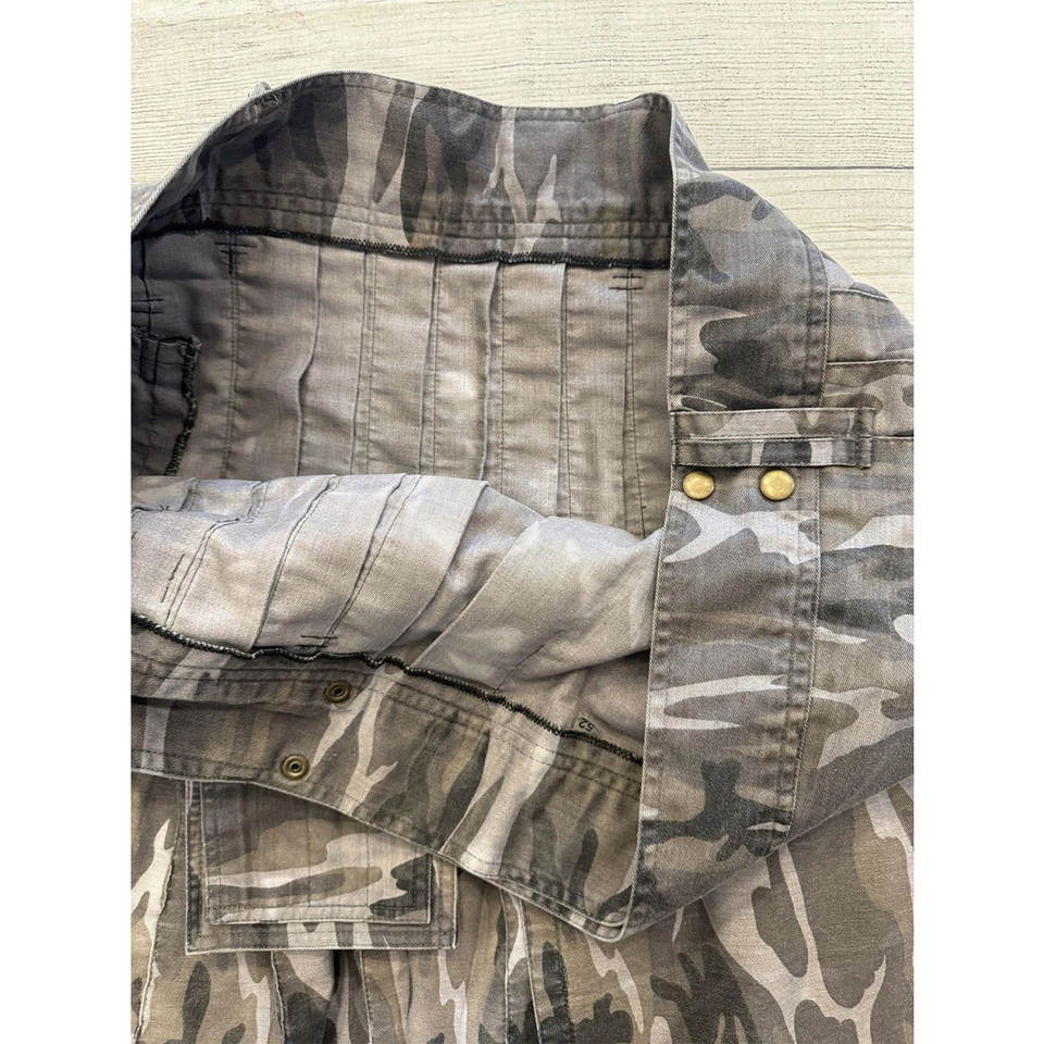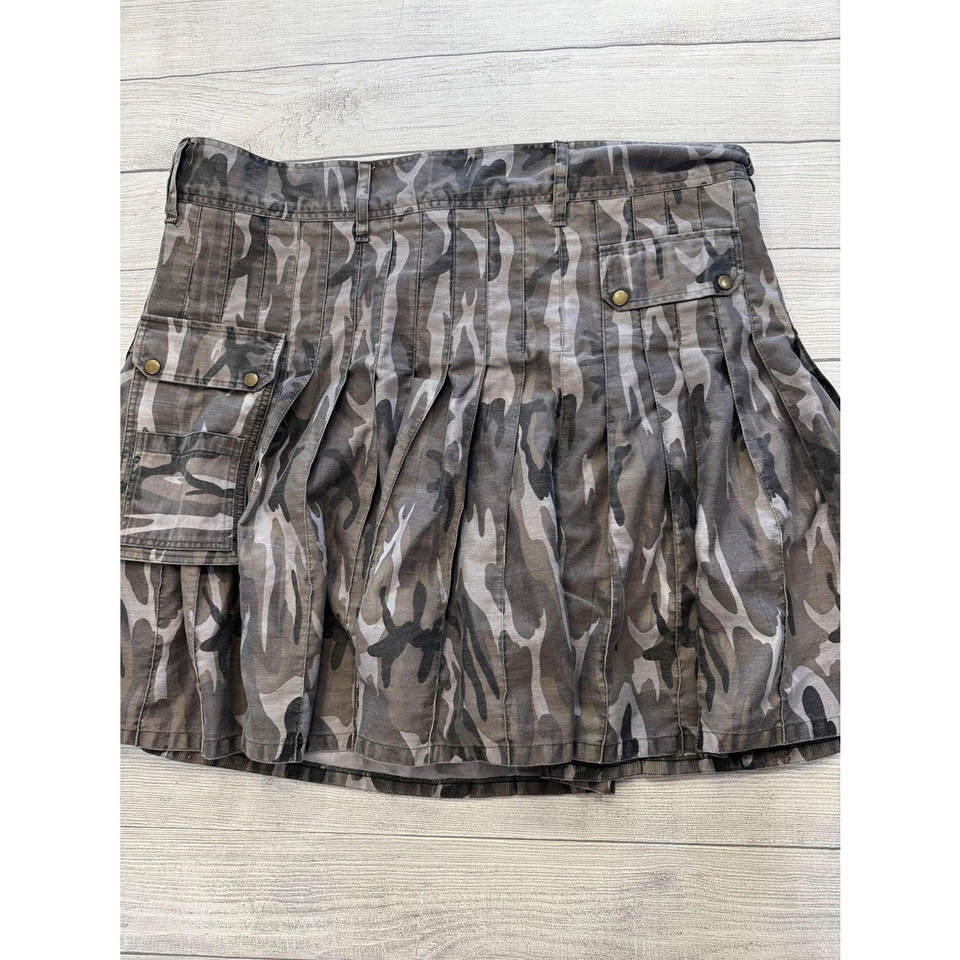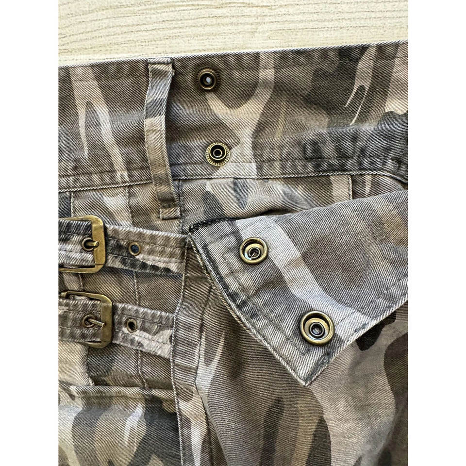กระโปรงกางเกงคาร์โก้ลายพรางสีเทาสำหรับผู้ชาย มีกระเป๋าหลายช่อง พร้อมกระดุมและสายรัด