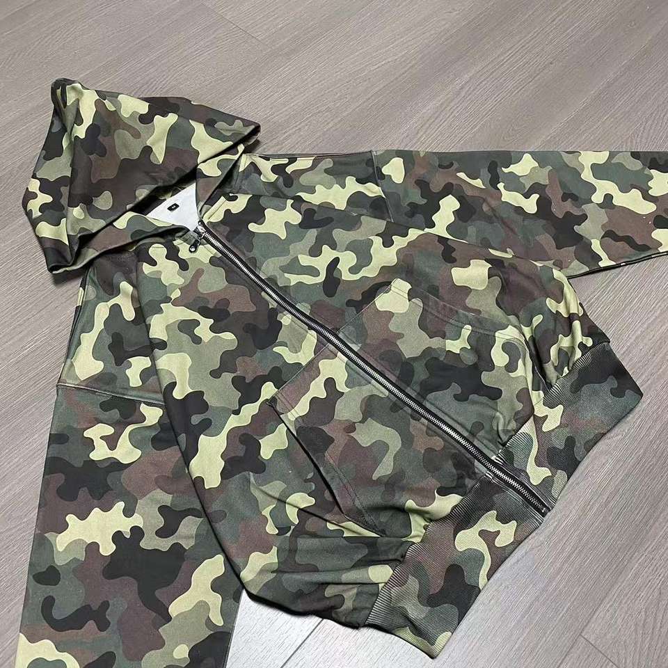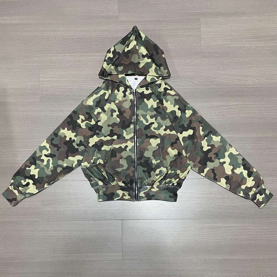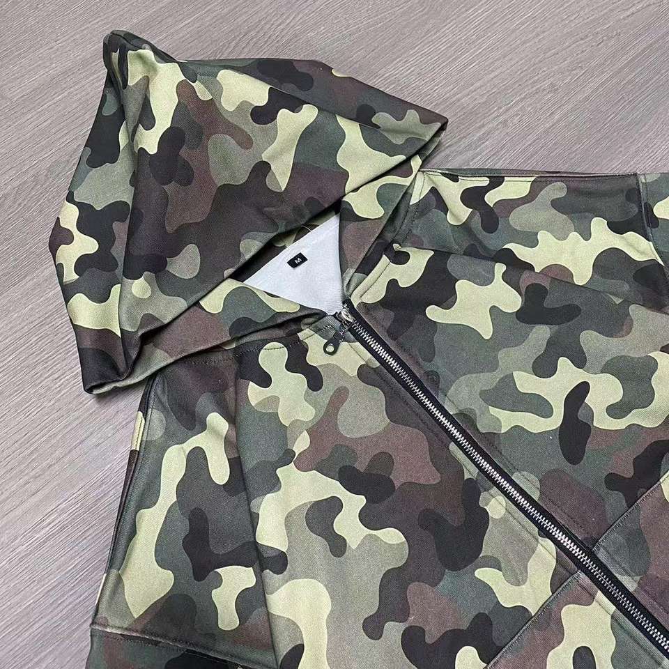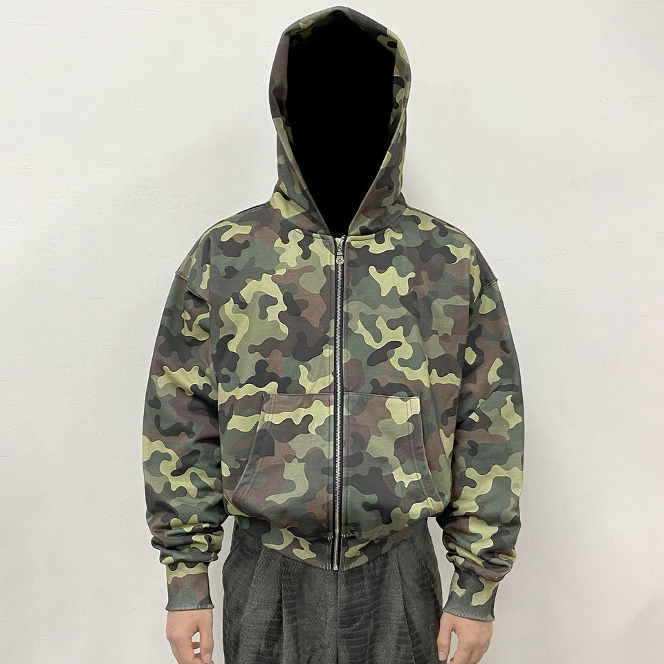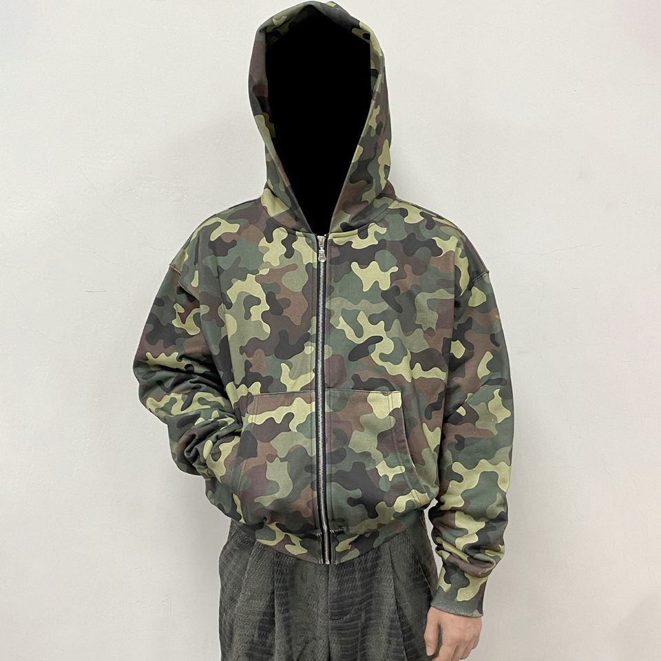 เสื้อมีฮู้ดมีซิปลายพรางโลโก้ออกแบบได้ตามที่ต้องการทุกเพศของ100% คุณภาพสูงผ้าฝ้ายฝรั่งเศสแบบครอปซิปมีฮู้ด