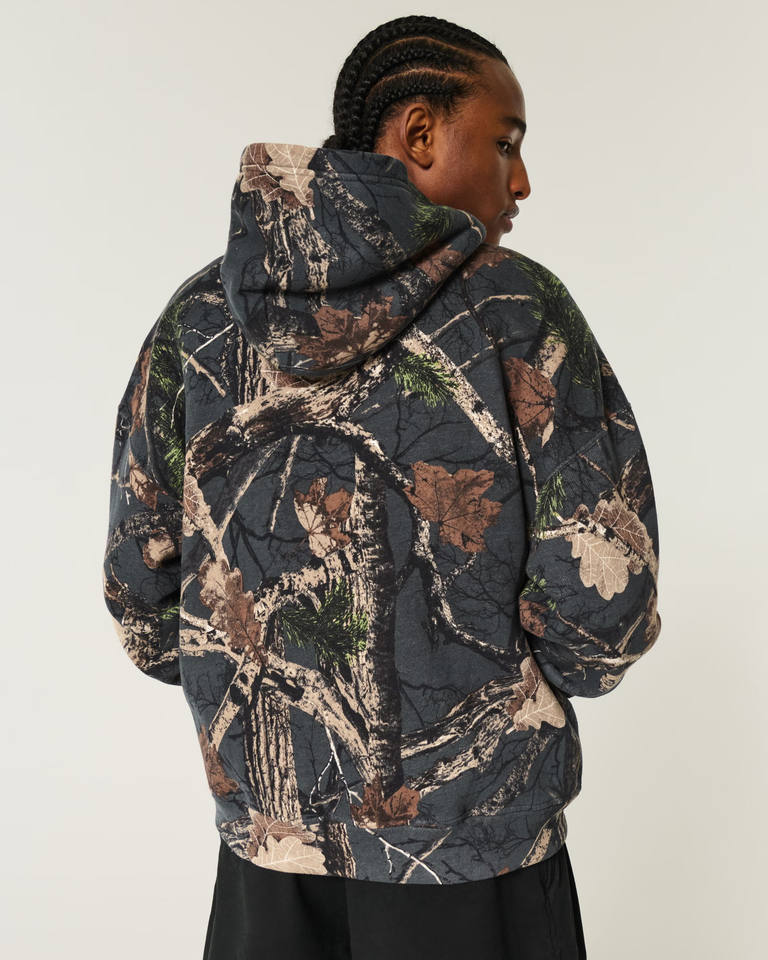 เสื้อมีฮู้ดลายพรางของผู้ชายเสื้อมีฮู้ดลายพรางสีเทาเข้มเสื้อสเวตเตอร์แบบสวมหัว