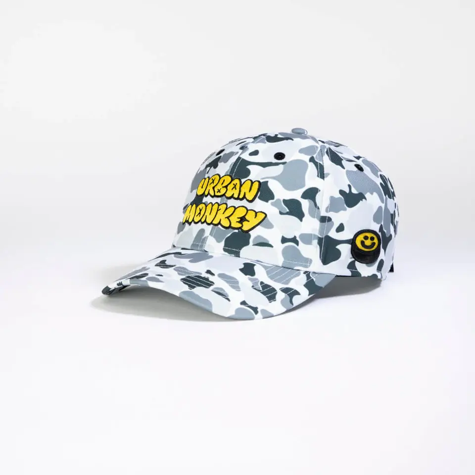 หมวกเบสบอลผ้าโพลีเอสเตอร์35% 65% ลายพรางปรับได้ปีกโค้ง6แผง